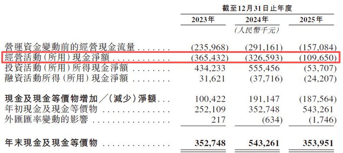 与多半账面损失同步出现的,是公司主营业务计算举止现款流的抓续承压。说明期内,星环科技计算举止产生的现款流量净额分裂为-3.65亿元、-3.27亿元和-1.1亿元,三年间共计净流出8.02亿元资金。