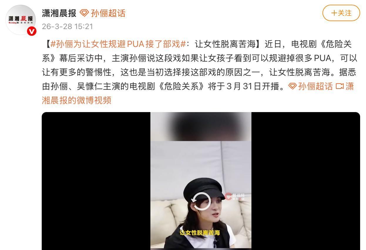 贵府参考:潇湘晨报|孙俪为让女性规避PUA接了部戏新浪微博|#孙俪献艺被打耳光的真实响应#