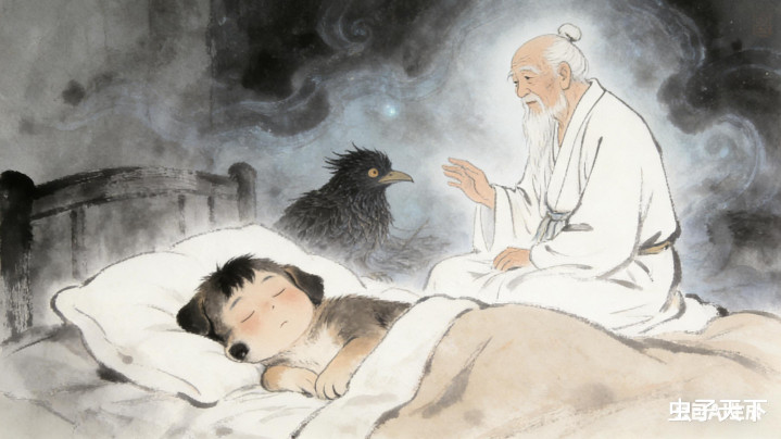 狗蛋醒来,飞速跑到八戒住的破庙里,拽着他的衣角,把梦里的话告诉他。