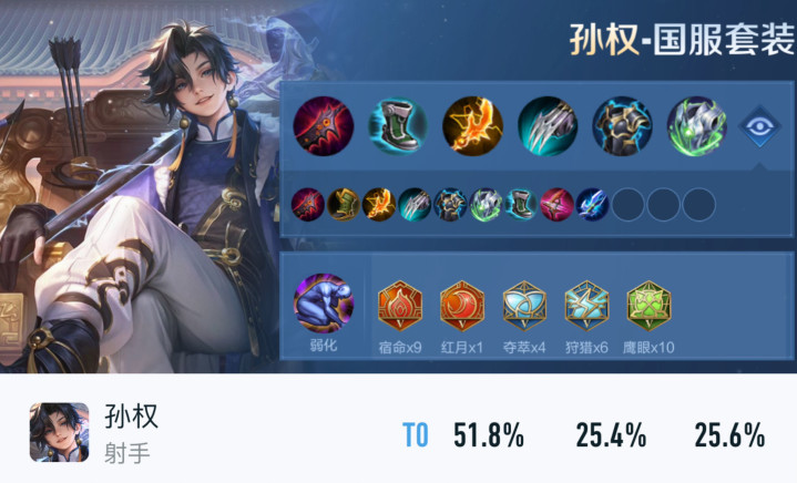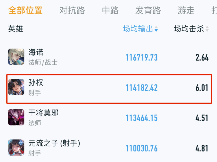 数据不会骗东谈主,孙权在前期中期的数据基本齐是查无此东谈主,但后期强势榜名列三甲,在全强者输出榜里高居第二,场均击杀值尽然不错达到6.01,重心是上手难度还很低,属于赛季末冲分首选弓手!