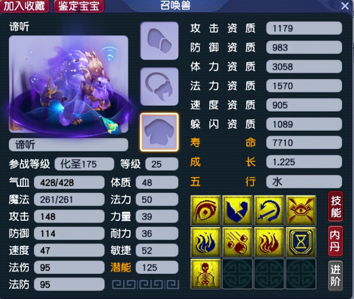 也即是说这只宝宝它也曾有3个轮子了,另外5个手段的话,是需要进行打书的,不错打的书有许多,要么即是持续补轮子,比如说水漫金山和奔雷咒这种,还有即是不错打高等魔之心和高等法术连击,这些加多法术伤害的手段。是以说这个谛听下一步是需要先把手段王人打好,这样能力成为一个高端召唤兽。