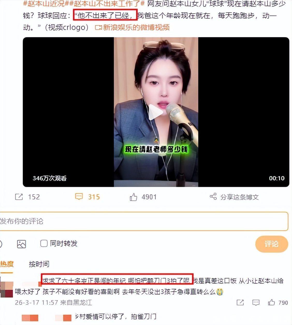 近日,赵本山之女球球在直播中谈及父亲现状,话语朴实竭诚,
