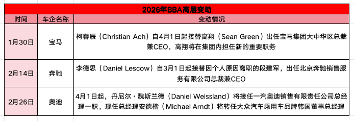 除了调价钱、推新品,为配合这场反击,BBA于本岁首同步还对中国市集高层进行了东说念主事更始。三位新帅均领有新动力汽车实战教授。