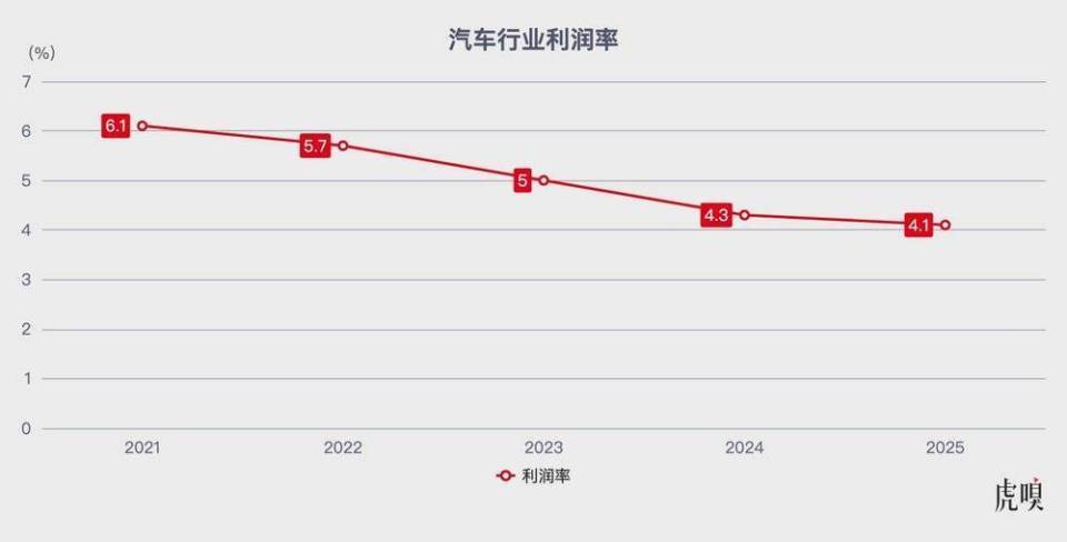 2018年,中国车市步入存量市集。五年后,史无先例的价钱战爆发并延续于今。数据直不雅地体现了这次洗牌的烈度:2025年,汽车行业利润率下滑到4.1%,近五年新低,其中12月的利润率更是唯有1.8%。