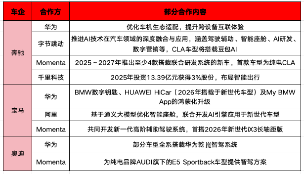 以上举措很猛经由上是BBA联手华为、阿里、字节跨越等国内科技公司补课智能化的恶果。下图为BBA与国内科技公司部分联接本体: