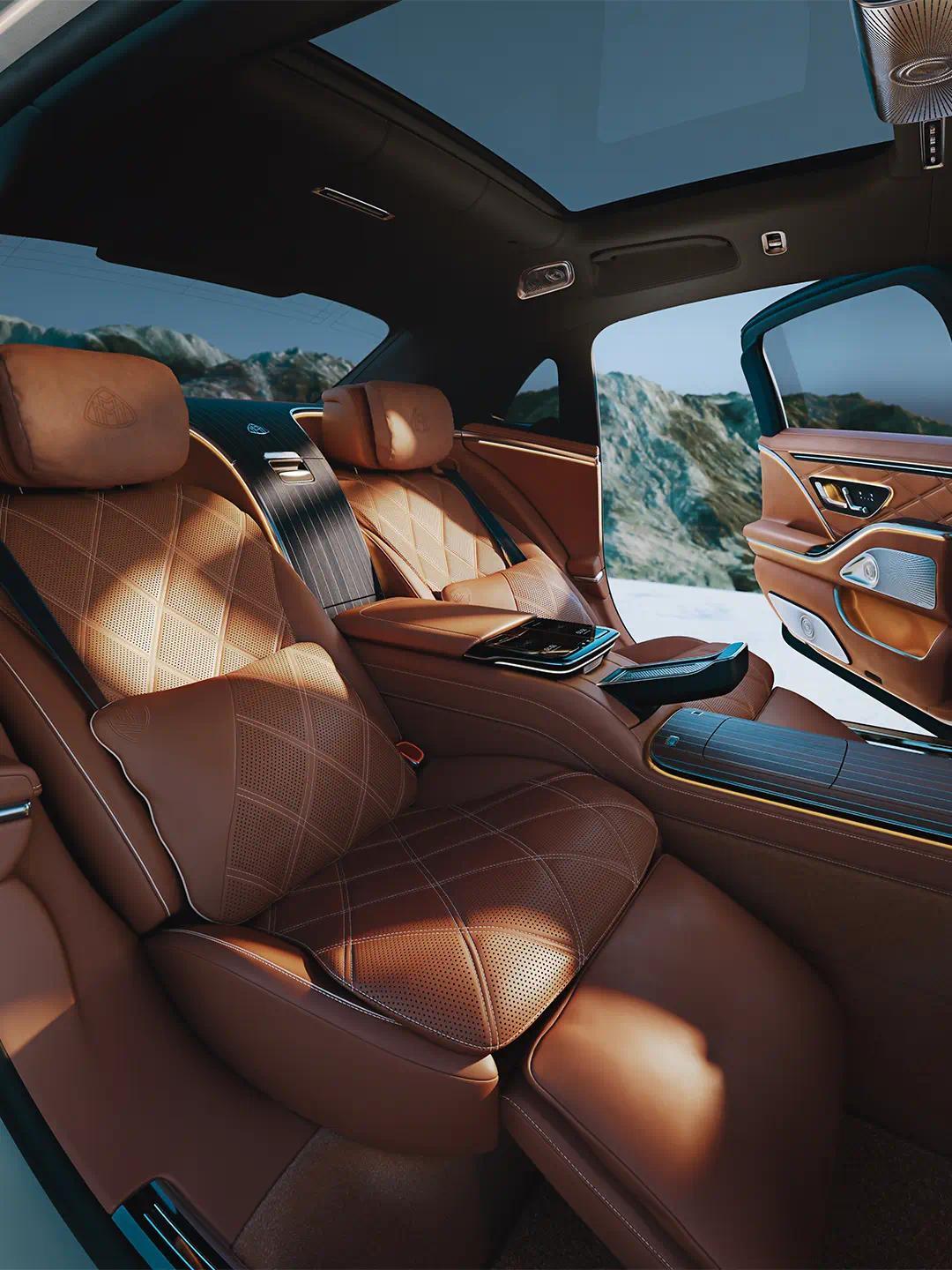 后排头等舱级平定座椅可终了19°至43.5°的大鸿沟角度调度,腿部空间拓展组件亦然标配,提供有电动伸缩腿托、加热座椅、可加热闲逸头枕与多格局推拿功能,而况前排座椅靠背可上前歪斜23度,为后排乘客创造至多1.4米的腿部空间。
