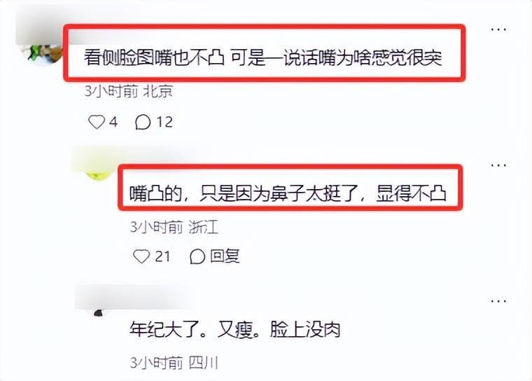不外,抛开骨相上风,她面部也有彰着小短板。仔细看,她有微弱龅牙,话语时上排牙齿会微微外露,嘴凸较为彰着,尤其在正面镜头下更超越。